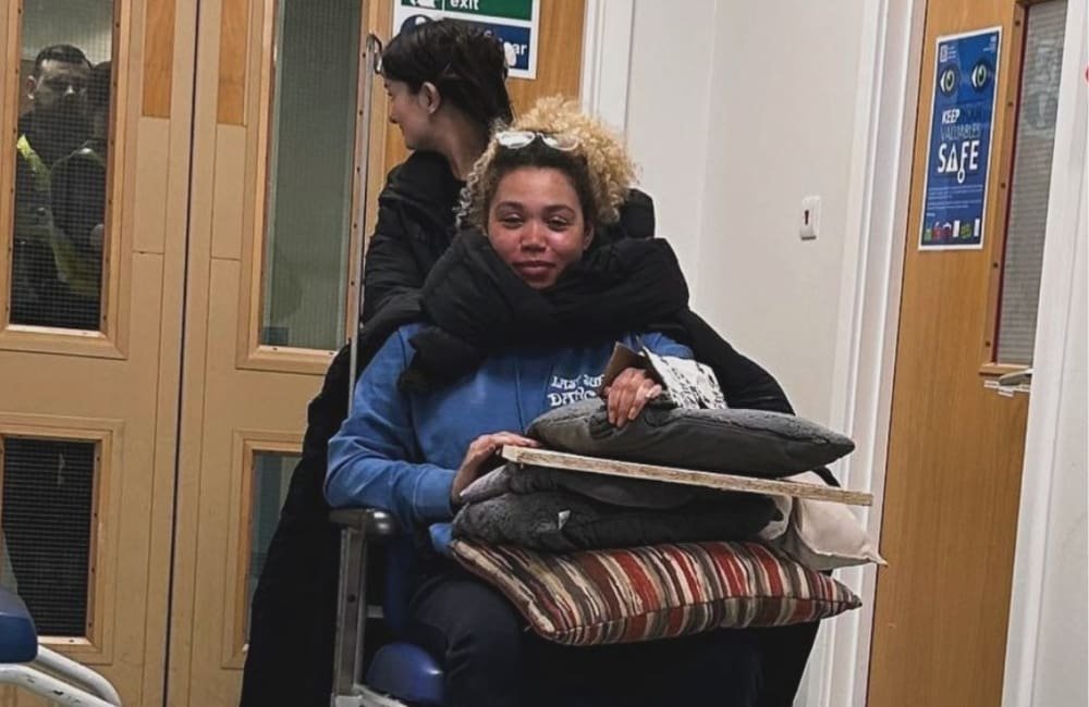 “Any movement is hard,” she continued. “I’ve got a nice splint here. We’ve made a splint out of an oat milk box — keep it vegan — and hopefully, we’ll get there safely and without too much movement. But we’re in the car, and we’re going there now, so I feel really positive about that.”