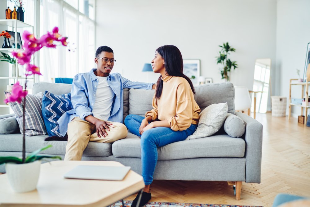 Add character to your room with unique accessories. Affordable items like mother-of-pearl effect knobs, an eye-catching brass curtain rod or vibrant cushions can elevate your living room’s look without breaking the bank.